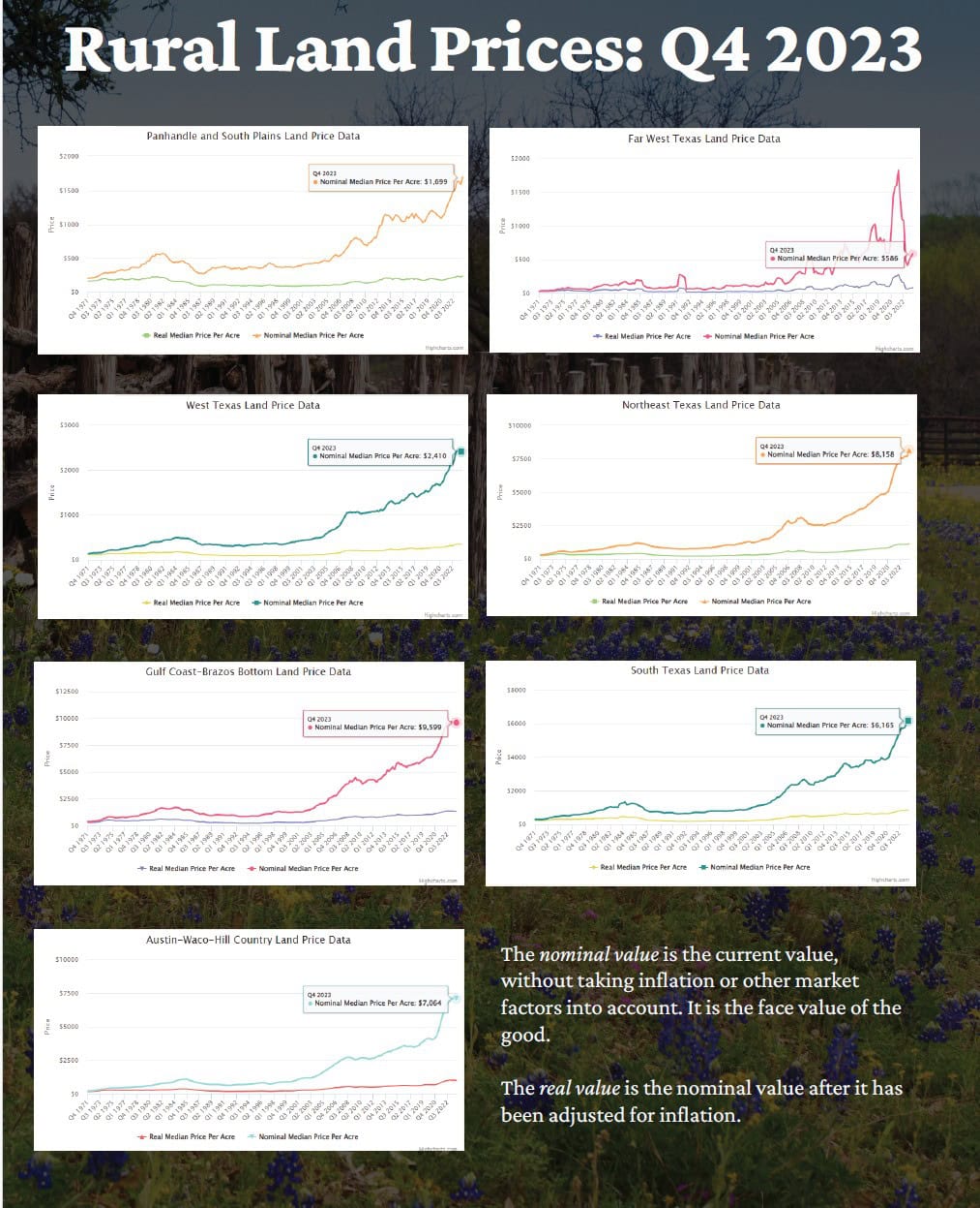 We are at a unique moment when informed decision-making is more potent than ever. The projections help us navigate Texas’s dynamic real estate landscape. You, the landowners, are the lifeblood of our state’s identity. Our lands are more than just parcels plotted on a map; they are the legacy of our past and the seeds of our future prosperity. With careful stewardship and a watchful eye on the market’s shifts, we can turn the challenges of 2024 into opportunities that bear fruit for years to come.
