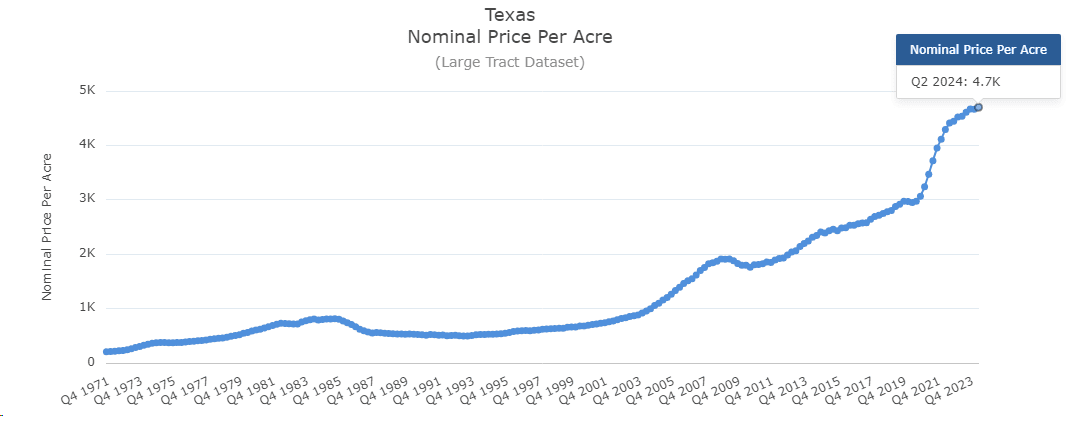 In August, the USDA released its annual Land Values Summary for 2024. This report looks at the average value for agricultural real estate across the country, but for the purpose of this email, I would like to highlight how Texas performed.